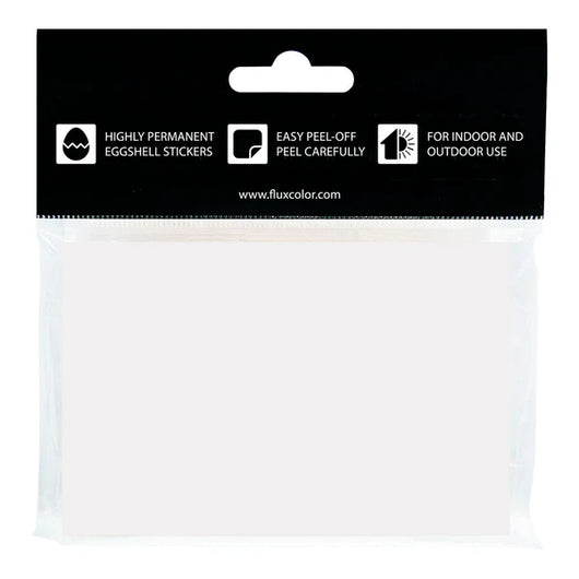 FLUX Eggshell Stickers made of ultra destructible vinyl.which is nearly impossible to remove. The stickers have an easy peel of tab but remember to always peel carefully since it's made of ultra destructible vinyl. Works on most surfaces and is suitable for both outdoor and indoor use. Each pack comes with 50 stickers measuring 7,4 x 10,5 cm (approx. 2,9 x 4,1 inch).